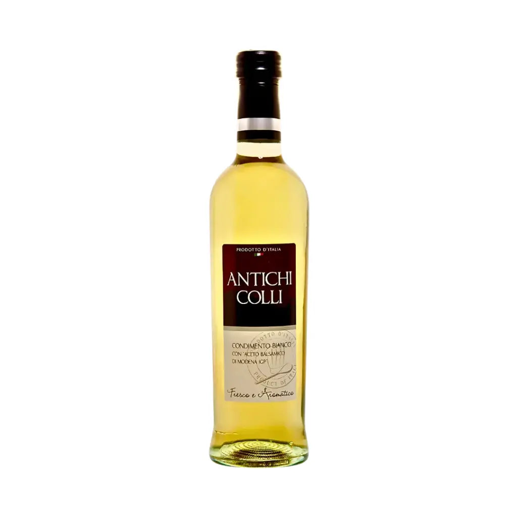 Antichi Colli's Balsamic White Condiment from the Cypress Line is a premium product crafted from selected white wine vinegars and grape must. This delicate condiment boasts low acidity, making it ideal for enhancing a variety of dishes.