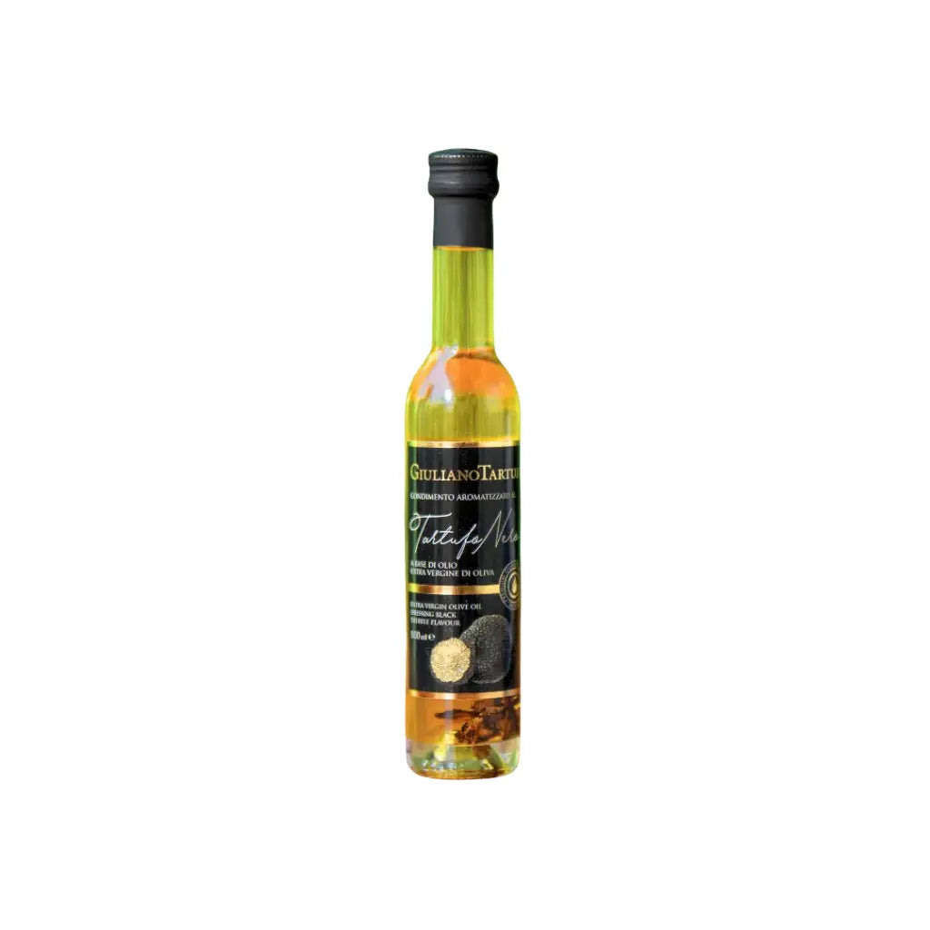 Black truffle flavoured condiment very easy to use. To be combined with several dishes to enhance the taste of truffle. The presence of truffle slices well visible at the bottom increase its prestige. SUGGESTIONS IN COOKING • Grilled and baked meat • Pasta, rice, risotto and polenta • Grilled, baked and pan-fried vegetables • Omelettes